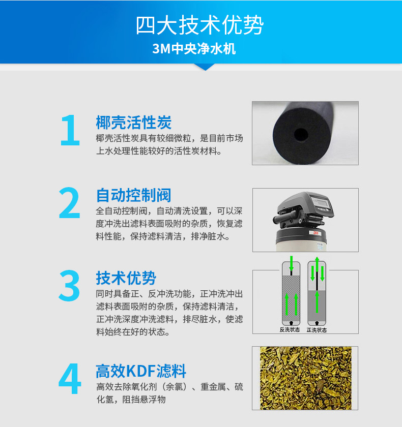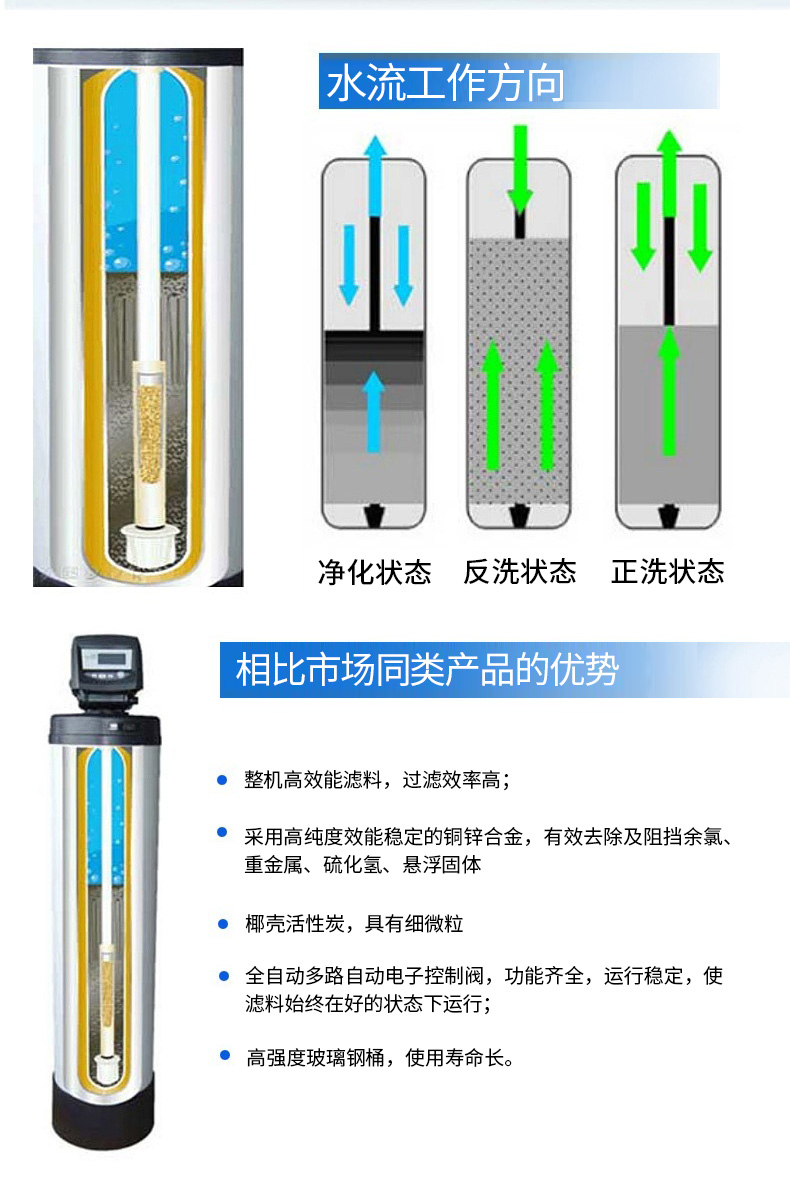 ●全自動控制閥,自動清洗設置,可深度沖洗出濾料表面吸附的雜質